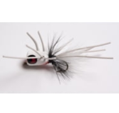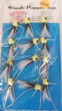 A tapered cork with brilliant fire colors tied with 8 wiggly feelers and floss tail make the Fire Shimmy? irresistible. GLOWs. Mustad hook. Red blush on face and bottom.