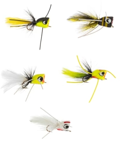 The Betts Bee Pop- Popper's distinctive body style which includes a cupped head creates an incredibly loud popping noise which drives fish crazy. Cupped head creates incredibly loud popping noise Small red and black dots mark bottom of cork body Rubber legs Long tail NOTE: Assorted colors; sorry, specific color requests cannot be accommodated.