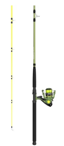 Specifically designed to haul catfish out of their hiding spots, Zebco’s Big Cat spinning combo is durable and ready for any tussle with a huge catch. A match for any catfish, this combo is built with all-metal gears, a smooth, multi-layered drag stack, and a ball bearing system in the reel, while the rod provides even more durability with a strong fiberglass rod and double-footed stainless-steel guides. A high-visibility rod tip and 25 lb hi-vis line increase awareness of movement under the water to help anglers snag a catfish with ease.